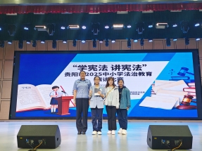 在贵阳市教育局组织的“学宪法 讲宪法”系列比赛中,我校积极选拔优秀学生参赛,经过校内初赛、校级集训,最终选派高一年级尹馨怡同学、高二年级丁文洁同学、施秋雪同学、罗安数同学组成代表队,分别参加演讲比赛与法治素养比赛。
